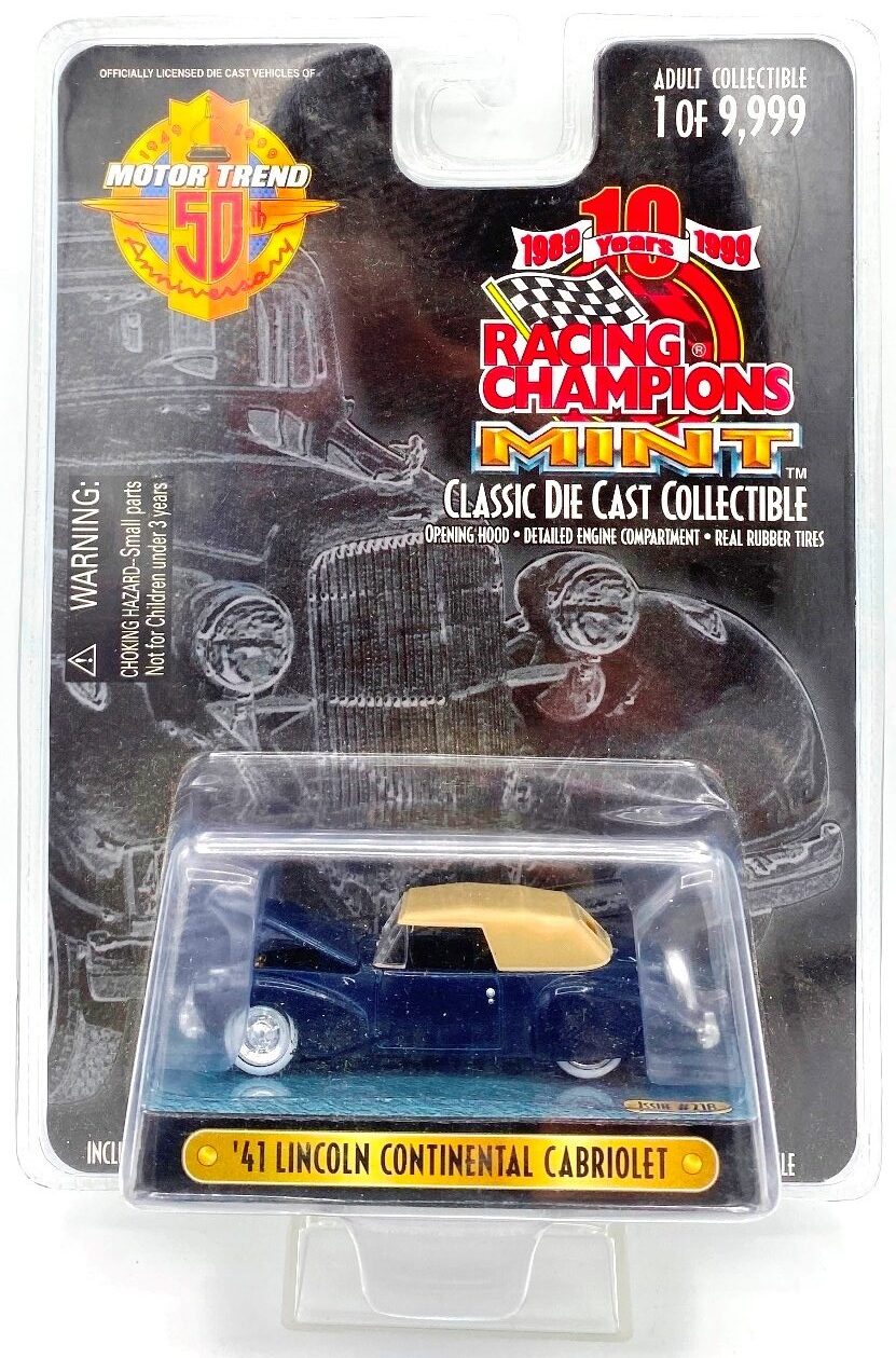 Vintage Racing Champions Mint Limited Edition 41 Lincoln Continental Cabriolet Motor Trend Magazine 50th Anniversary Racing Champions 10th Anniversary 3 25 Die Cast Scale Rare Vintage 1999 Now And Then Collectibles