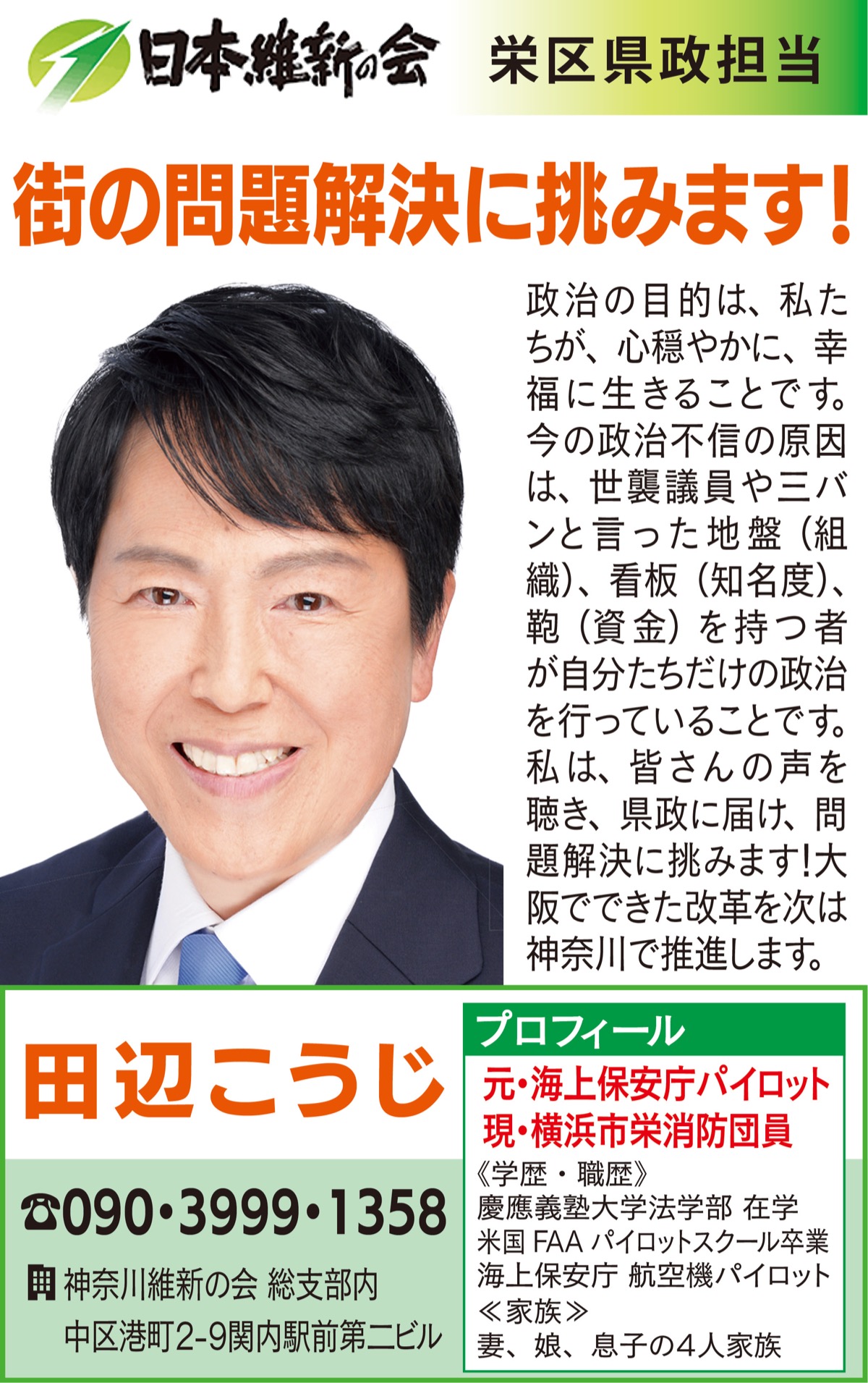 日本維新の会 栄区県政担当 田辺こうじ 医療 介護 福祉 に県独自の体制を 港南区 栄区 タウンニュース